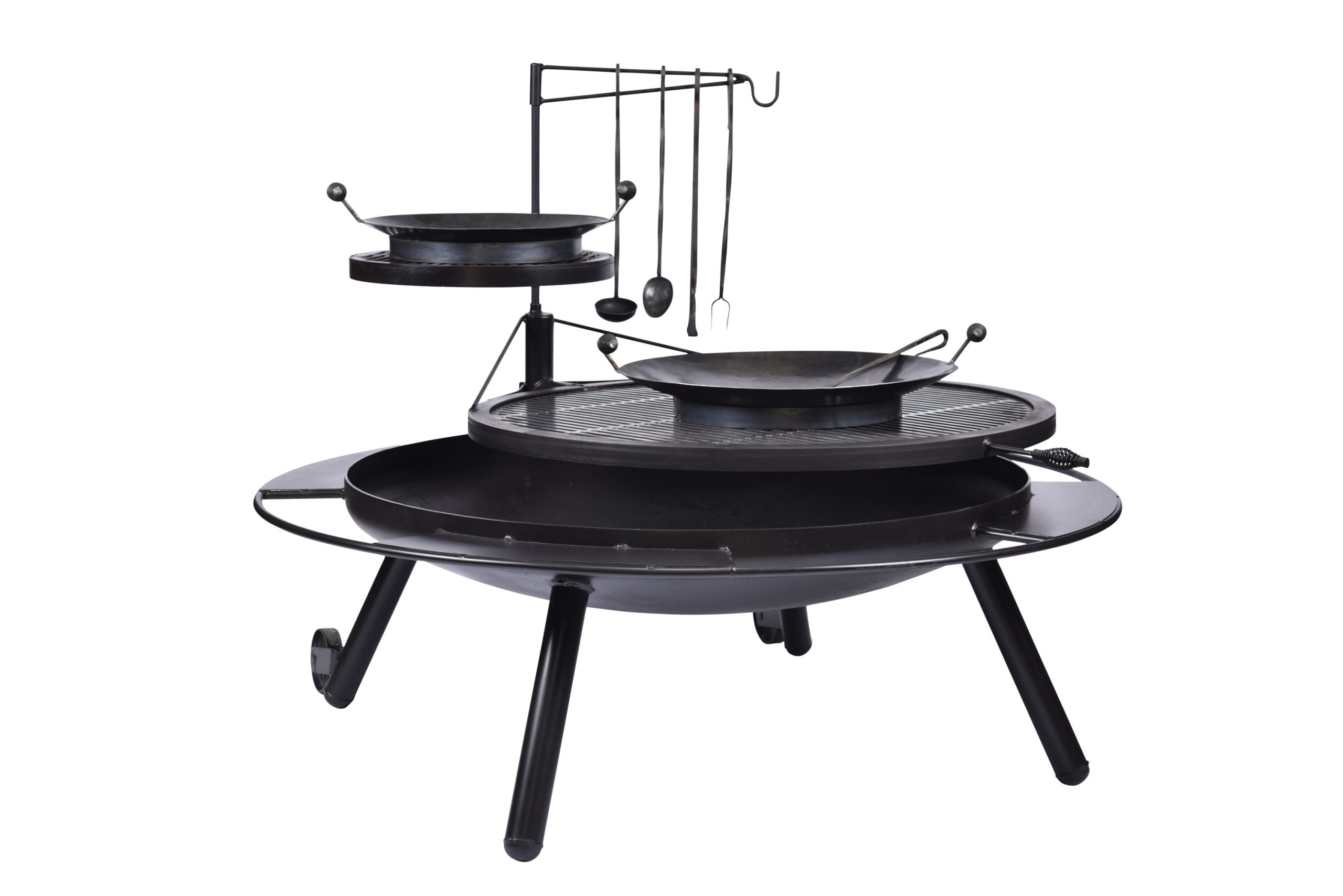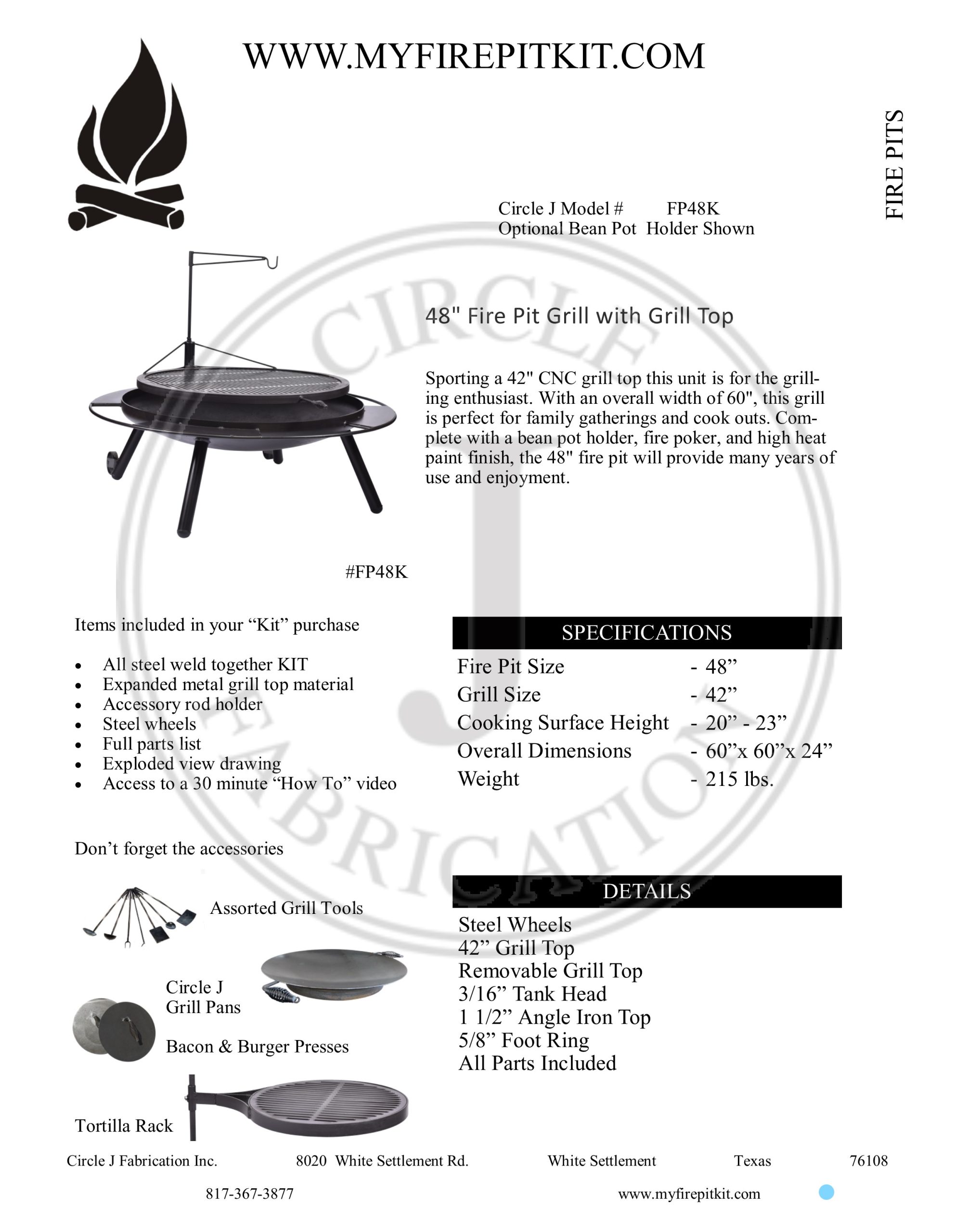 Sporting a 42" CNC grill top this unit is for the grilling enthusiast. With an overall width of 60" this grill is perfect for family gatherings and cook outs. Complete with a bean pot holder, fire poker, and high heat paint finish, the 48" fire pit will provide many years of use and enjoyment.